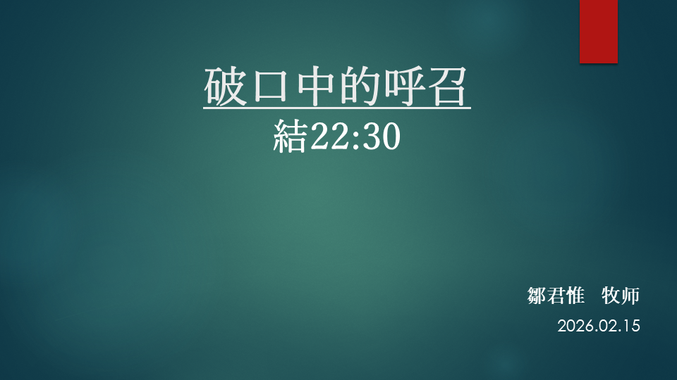 破口中的呼召 結22:30 鄒君惟 牧师