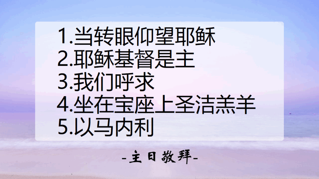 当转眼仰望耶稣 耶稣基督是主 我们呼求 坐在宝座上圣洁羔羊 以马内利 -